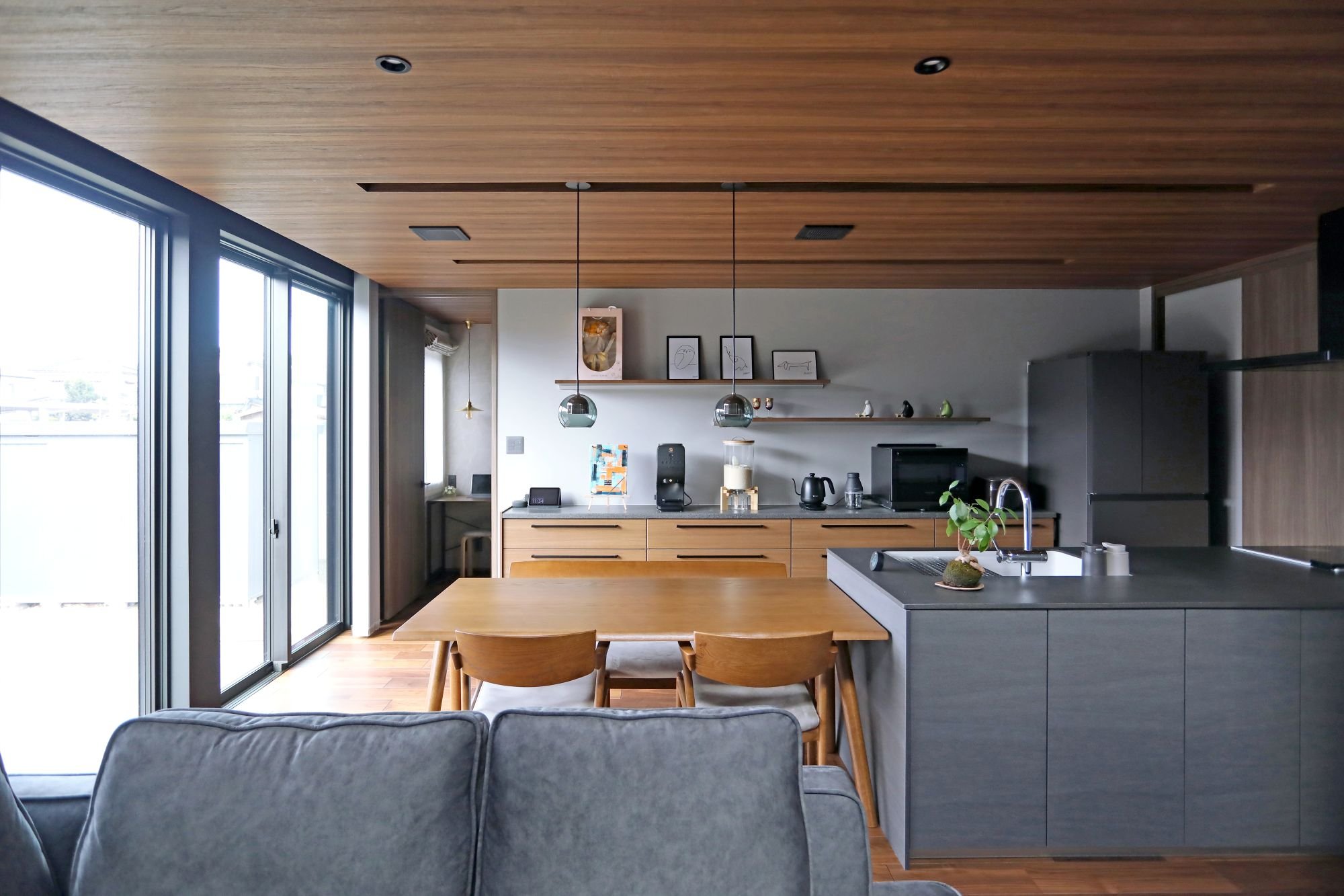 ウォールナットの温もりとグレーの洗練が調和する家