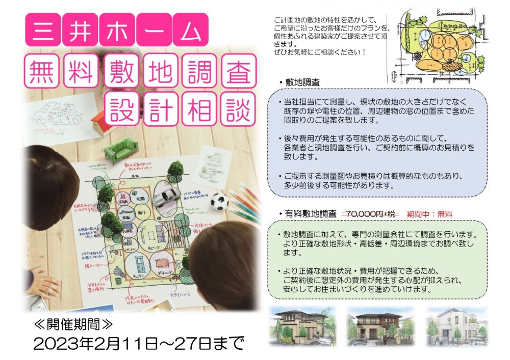 イベント開催期間中は、《敷地の調査費用・プランの作成費用》は無料となります!