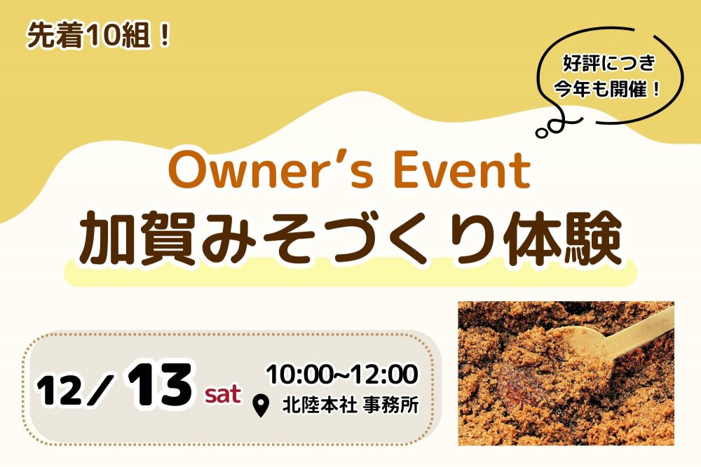 【オーナーズイベント】12月13日加賀みそづくり体験