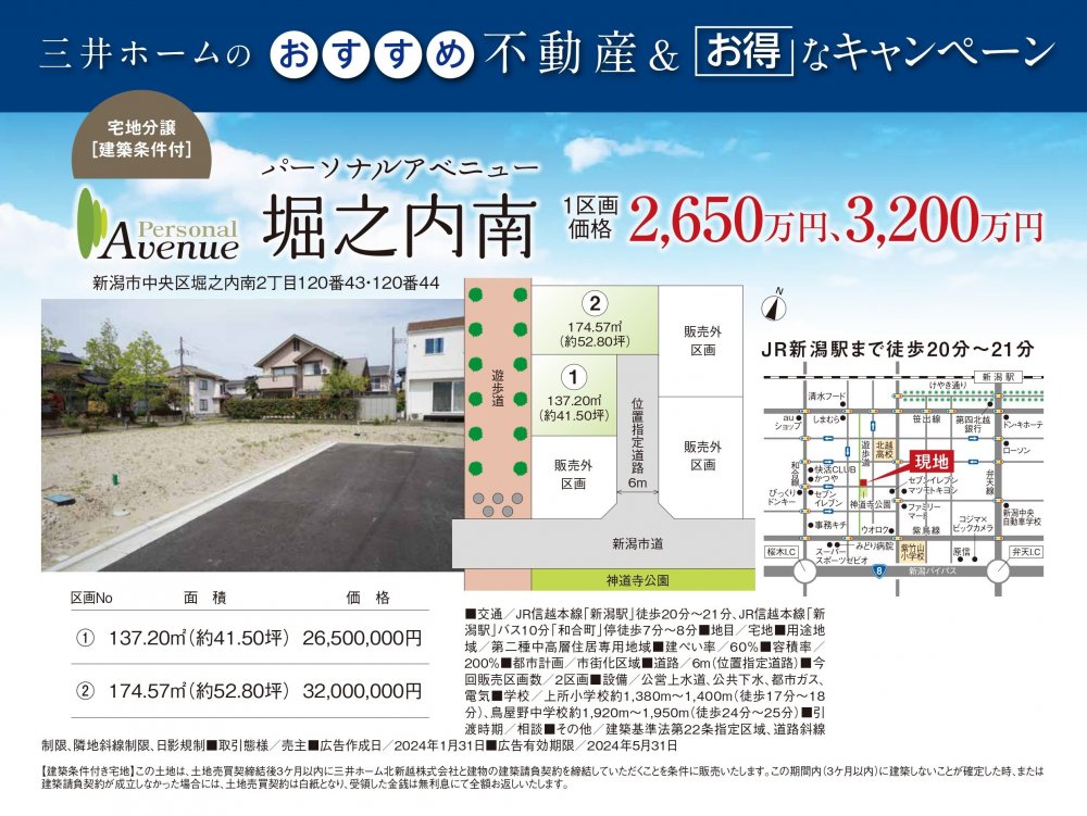 【新潟駅周辺で住まいを検討中の方】新潟市堀之内南・分譲地情報