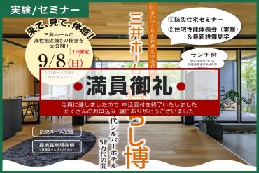 【防災を学ぶ】三井ホーム暮らし博 in 万代(9/8)