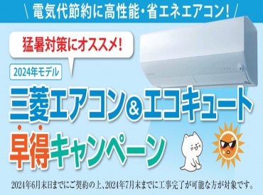 【猛暑対策にオススメ!】三菱エアコン×エコキュート 早得キャンペーン!