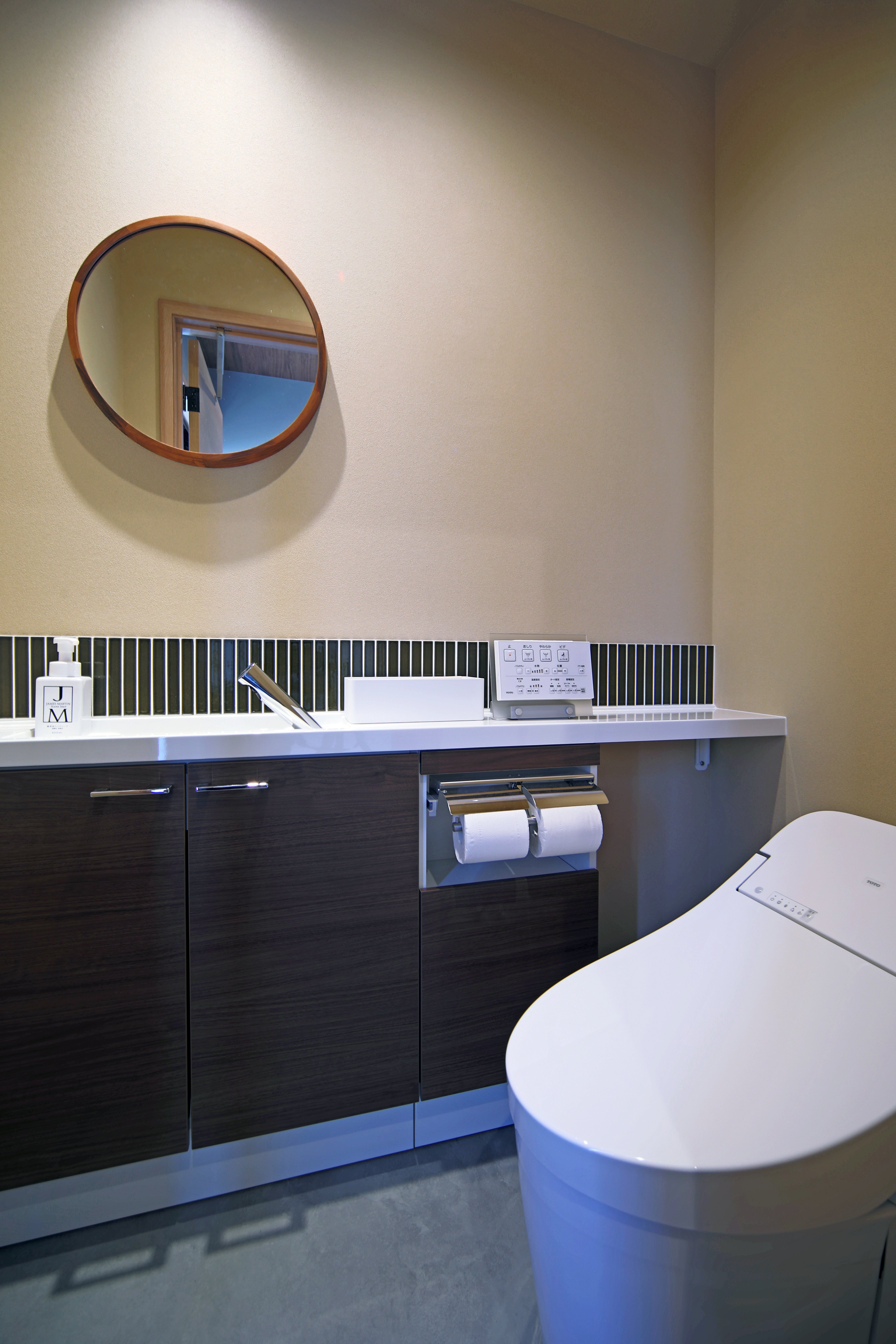 来客をもてなす、落ち着いた雰囲気のトイレ